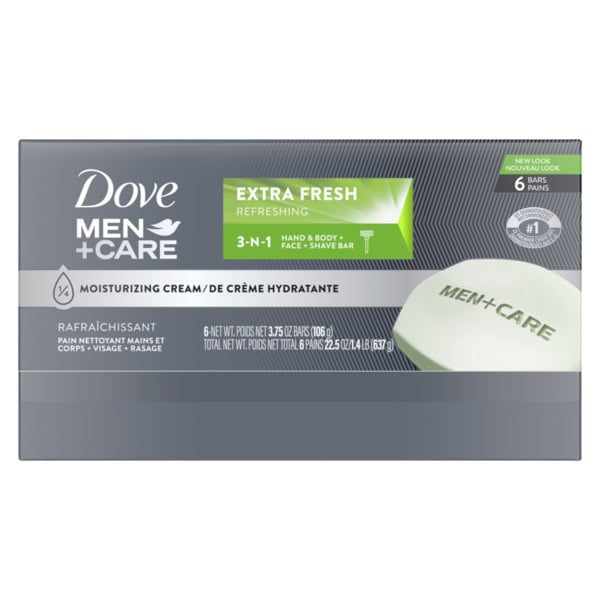 • 3 IN 1 SKIN CLEANSER FOR BODY, FACE, AND SHAVING: Dove Men+Care Extra Fresh Body and Face bar formulation is so hydrating and gentle on skin that you can also use it to wash your face or to shave
