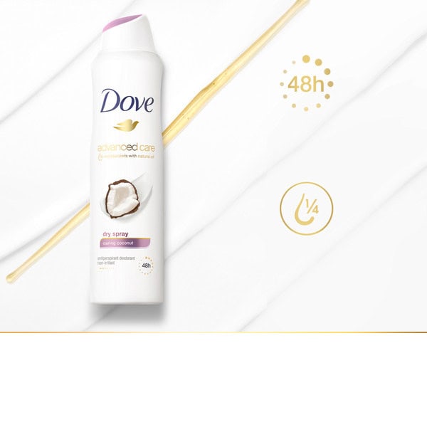 • CARES & PROTECTS: Dove Advanced Care Caring Coconut Antiperspirant Deodorant Dry Spray for beautifully soft, resilient underarms