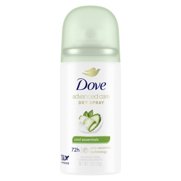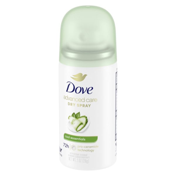 Beautifully soft, resilient underarms, incoming. Introducing Dove Advanced Care Cool Essentials Antiperspirant, the dry spray essential that helps repair your underarm skin barrier after shaving with every use. Enjoy the crisp, cool scent of pear, cucumber and honeydew melon in this antiperspirant deodorant, which uplifts and refreshes your senses as you go about your day. The hero technology in Dove’s Advanced Care antiperspirant deodorant range? Innovative Pro Ceramide Technology, which strengthens your skin’s barrier by boosting ceramide levels (that naturally reduce when you shave), allowing the formula to help repair your underarm skin barrier. Using this kind-to-skin antiperspirant deodorant means underarms can benefit from skin-loving ingredients as you spray, without letting any shaving worries get in the way. Did you know that when you shave, â…“ of what you remove is skin? Cue Dove Advanced Care Cool Essentials Antiperspirant Deodorant, enriched with Pro Ceramide Technology to strengthen your skin barrier and help it recover from shaving symptoms, like dryness and redness. With 72 hour odor control and sweat protection, this antiperspirant quickly dries on your skin and reduces underarm wetness, so you can shave, apply antiperspirant deodorant and start the day with silky-soft skin. Shake your antiperspirant deodorant well, then hold the can six inches from your skin. Spray for two seconds under each underarm for 72 hour odor control and sweat protection and enjoy your touchably soft skin with peace of mind. Remember to wait a few minutes before applying your antiperspirant deodorant after shaving* – the formula works best on cool, dry skin. Apply Dove Advanced Care Cool Essentials Dry Spray antiperspirant before walking out the door for a spring in your step. In a rush? Take this antiperspirant deodorant in your bag to freshen up on-the-go – hello new daily essential.