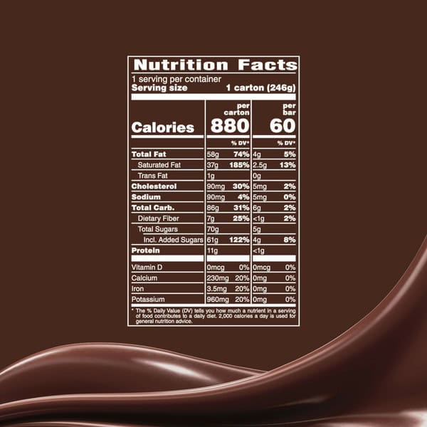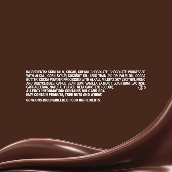 Skim Milk, Sugar, Cream, Chocolate, Chocolate Processed With Alkali, Corn Syrup, Coconut Oil, Less Than 2% Of: Palm Oil, Cocoa Butter, Cocoa Powder Processed With Alkali, Milkfat, Soy Lecithin, Mono And Diglycerides, Carob Bean Gum, Vanilla Extract, Guar Gum, Lactose, Carrageenan, Natural Flavor, Beta Carotene (color)