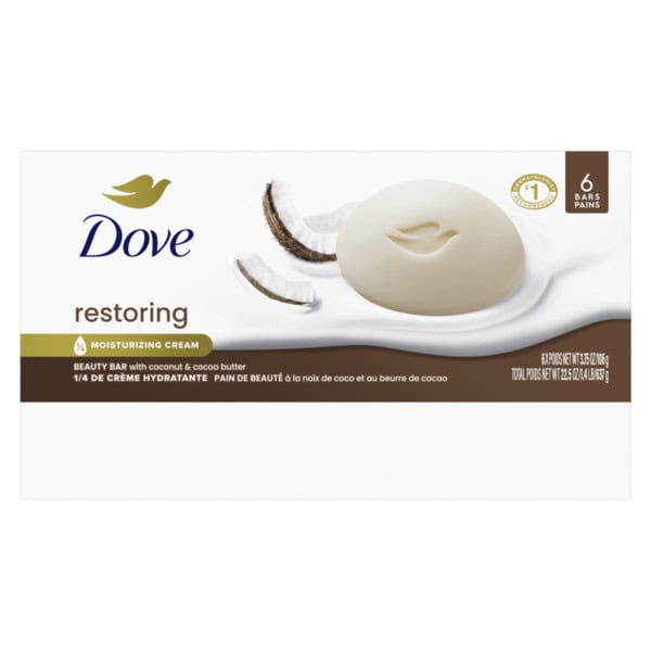 • NOURISHES & RESTORES: Dove Restoring Beauty Bar with coconut & cocoa butter gives a creamy lather for soft skin