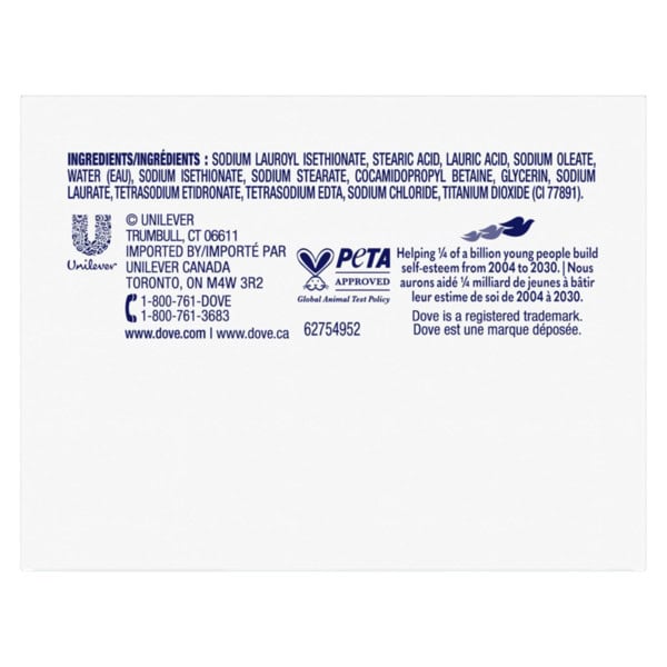 This Dove Beauty Bar offers a gentle & fragrance free cleansing experience. Unlike ordinary bar soap, the Dove Beauty Bar is made with 1/4 moisturizing cream to deeply nourish skin and help prevent dryness. This cleansing bar is uniquely created with 1/4 moisturizing cream and a plant-based cleanser for skin care that maintains pH balance and the natural skin barrier. This gentle skin cleanser is multi-purpose: gently washing away dirt and oil while moisturizing and nourishing the skin. It is gentle enough for use on face, hands, and body, as a facial cleanser and body soap bar. To use this Sensitive Beauty Bar, wet your hands and gently lather the Beauty Bar between them, then apply the lather to your face or body before rinsing thoroughly with water. As the #1 dermatologist recommended bar brand, the Dove Beauty Bar formula is free from sulfate cleansers, parabens, and phthalates. Dove believes real beauty is cruelty-free. Globally, Dove does not test on animals and is certified as PETA Approved. Through the Dove Self-Esteem Project, Dove helps parents, mentors, teachers, and youth leaders deliver self-esteem education that’s reached more than 60 million young people so far. By 2030, their mission is to have helped ¼ billion build positive body confidence.