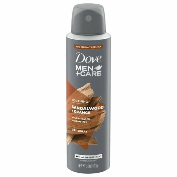 If you’re looking for an antiperspirant deodorant for men with long-lasting protection against sweat and odor, look no further than NEW Dove Men+Care antiperspirant dry spray with a Sandalwood and Orange scent. Designed for men on the move, this dry spray deodorant contains plant-based moisturizer and natural essential oils that offer you 48-hour odor protection along with a natural inspired soothing feel. This anti-perspirant dry spray is tough on odor but not on skin. The result? Long-lasting protection that works to keep you feeling soothed and dry for 48 hours. For the most effective protection, give the can a shake before you spray this antiperspirant on smoothly, let the soothing scent of Sandalwood and Orange give you protection that works against sweat and odor. You can also rest assured that this antiperspirant is cruelty-free, as part of Dove’s global mission. Complete your grooming routine with the entire Dove Men + Care natural inspired range. Pair this deodorant with the Dove Men + Care Eucalyptus + Birch Body Wash and Dove Men + Care Dry Spray Minerals + Sage. Or try our other Dove Men + Care 0% Aluminum deodorant sticks and sprays, available in invigorating scents like Lime + Sage and refreshing ones like Eucalyptus + Birch.