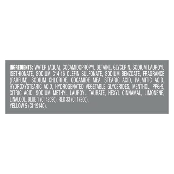 Water (eau), Sodium Laureth Sulfate, Cocamidopropyl Betaine, Glycerin, Sodium Chloride, Fragrance (parfum), Acrylates Copolymer, Sodium Lauroyl Isethionate, Stearic Acid, Palmitic Acid, Menthol, Sodium Benzoate, Citric Acid, Tetrasodium Edta, Phenoxyethanol, Ppg-9, Iodopropynyl Butylcarbamate, Hexyl Cinnamal, Limonene, Linalool, Yellow 5 (ci 19140), Blue 1 (ci 42090), Red 33 (ci 17200).