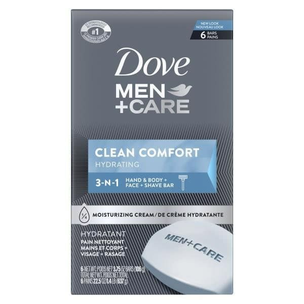 Looking for a men’s bar soap that will thoroughly clean your skin and leave it feeling hydrated, cool, and comfortable? Treat your skin every day with the mild but effective formula of Dove Men+Care Clean Comfort Body and Face Bar. More than just a regular men’s bar soap, this bar from the #1 Dermatologist Recommended Men’s Brand has a formula that cleanses your skin and delivers refreshment and skin comfort. This body bar is part of the Dove Clean Comfort range and unlike regular bar soap for men which can dry your skin out, the Dove Men+Care bar contains ¼ moisturizing cream that helps maintain skin’s hydration and moisture levels, while also delivering a refreshing clean. Dove Men+Care understands the importance of having a simple daily routine for caring for your skin. This Dove Clean Comfort Body and Face Bar is noncomedogenic and can be used across your whole body to gently clean skin and is even mild enough for use on your face. In the shower, simply wet the Dove Men+Care bar and rub it between your hands to produce a light foam lather before working it over your skin and rinsing thoroughly. The creamy foam rinses away easily and the non-greasy foaming lather will provide a comfortable, refreshing clean.