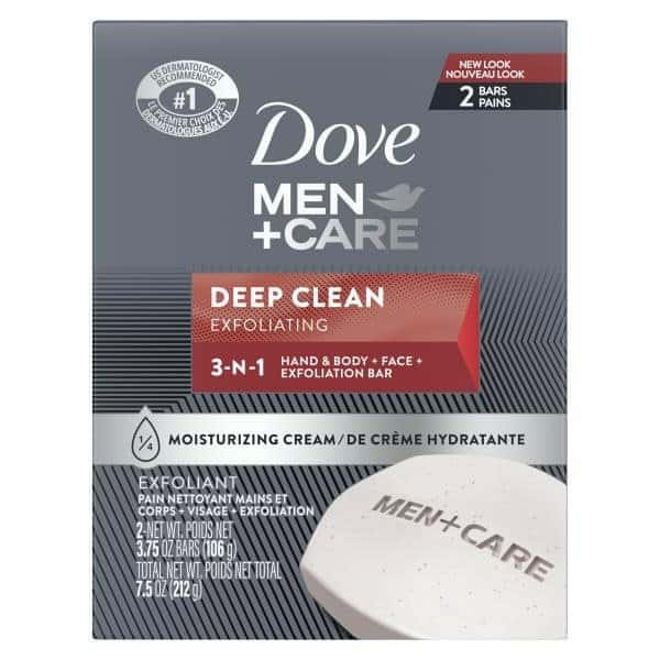 Looking for a bar soap for men that cleanses while also helping protect from dry skin? Dove Men+Care Deep Clean Body and Face Bar contains purifying grains and delivers a deep, refreshing clean that leaves skin feeling hydrated and strong. Dove Men+Care Body and Face Bar effectively washes away bacteria, nourishes your skin. Body and face soap bar goes beyond just delivering a deep clean: it helps to protect skin from feeling tight and dry with its unique formula made for men’s skin. With ¼ moisturizing cream, the Dove Men+Care Deep Clean Body and Face Bar nourishes for skin that feels healthy and strong. This #1 Dermatologist Recommended body soap and face soap bar helps to maintain skin’s hydration levels and protect skin against dryness. Regular men’s bar soap can often leave skin feeling tight and dry, but Dove Men+Care Deep Clean Body and Face Bar helps maintain skin’s moisture to provide skin comfort and refreshment. Plus, its formula is non-comedogenic and mild and gentle enough to use on your face. To use Dove Men+Care Deep Clean Body and Face Bar, wet the body bar in the shower and massage into your face and body to create a light foam before rinsing thoroughly. The lather rinses cleanly away without leaving behind a greasy feel. Dove Men+Care Deep Clean Body and Face Bar has a classic scent, and is clinically proven to fight skin dryness. This body bar not only cleanses, but also leaves your skin feeling healthy and strong.
