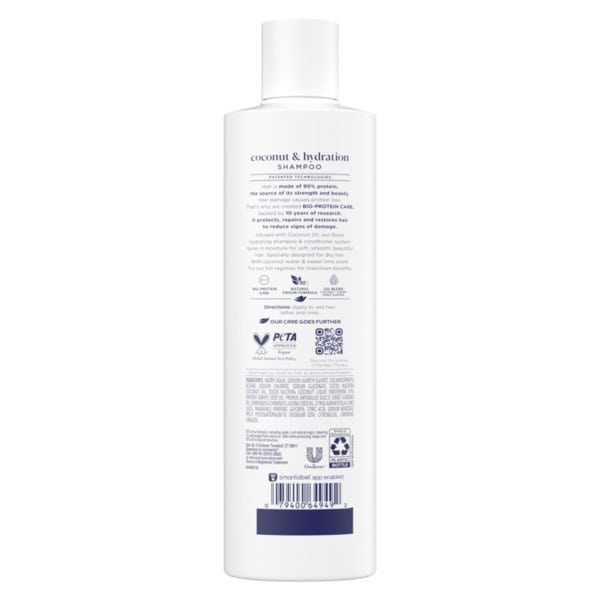 Nourish and rehydrate your hair for ultimate hydration with Dove Coconut & Hydration hair shampoo. This deeply hydrating formula works in harmony with your dry, damaged hair to lock in moisture for 24H*. This shampoo features a delicious coconut scent and turns dry hair soft, smooth, and beautiful again. Dove Coconut & Hydration Shampoo is the first step in our regimen towards moisturized and manageable hair. Pair with Dove Coconut & Hydration Conditioner and enjoy locked in moisture for 24H*. Our Coconut & Hydration range* is enriched with coconut oil which is known to moisturize and smooth hair. It also features Bio-Protein Care technology, designed to regenerate hair strength and refill it with 1 trillion strength protein builders with every wash. Dove Coconut & Hydration Shampoo and Conditioner system is ideal for dry hair that needs extra care to reduce additional breakage. Just apply this Dove Coconut & Hydration Shampoo onto wet hair, lather, and rinse before using the Dove Coconut & Hydration Conditioner for maximum effect. As always, Dove hair products are vegan and PETA-approved, meaning it’s not tested on animals globally. Discover hair freedom and free yourself from the worry of hair damage – embracing a new dawn of hair possibilities now. *with system *shampoo, conditioner/mask & serum