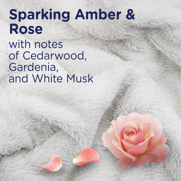 • SPARKLING AMBER & ROSE SCENT: Downy fabric softener offers a sparkling amber and rose scent with notes of Cedarwood, Gardenia and White Musk for an irresistible laundry experience