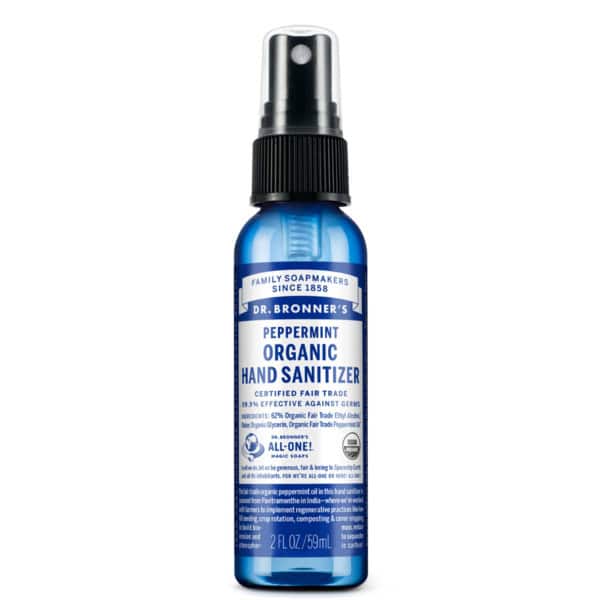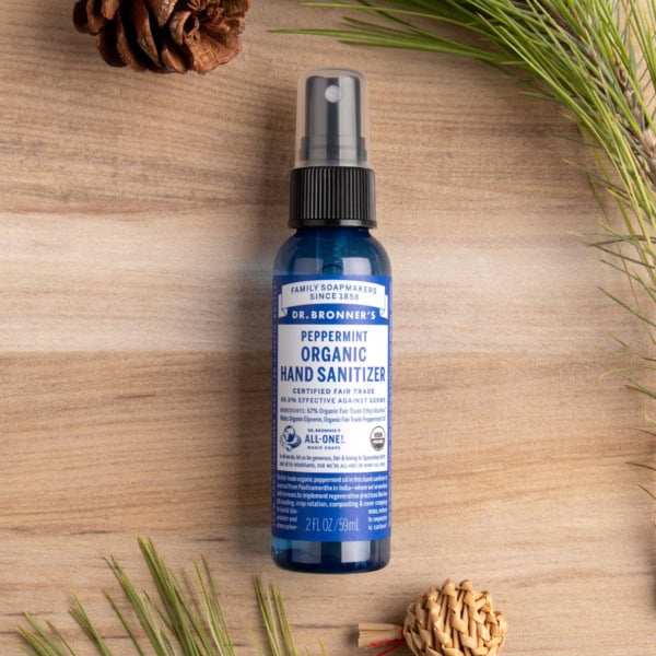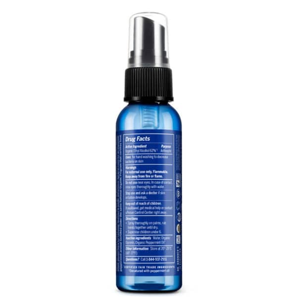 The pure peppermint aroma will stimulate your sense and focus your mind! Just as effective as conventional sanitizers without the nasty chemicals! Only fair trade organic ethyl alcohol, organic peppermint oil, organic glycerin and water. Fair trade organic peppermint oil is sourced from Pavitramenthe in India—where we’ve worked with farmers to implement climate-friendly regenerative organic practices to build healthy soils, reduce erosion and sequester atmospheric carbon!