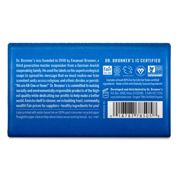 Dr. Bronner’s Pure-Castile Bar Soaps are vegan, gentle and versatile, good for washing body, face or hair! Enjoy only 2 cosmetics, enough sleep & Dr. Bronner’s Magic Soaps to clean-body-mind-soul-spirit instantly uniting One! All-One!!