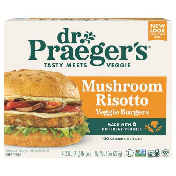 Traditional Italian mushroom risotto now in a plant-based meatless burger unlike any other! Dr. Praeger’s Sensible Foods® delicious Mushroom Risotto Veggie Burgers are made with a mix of mushrooms, brown and Arborio rice, peas, spinach and more for a sophisticated flavor profile. Don’t forget that these gluten free, soy free, vegan, and Non-GMO burgers are also only 110 calories each.