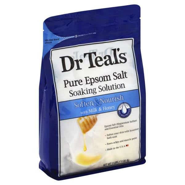 How to Use: Soak Away Sore Muscles: Pour at least 2 cups of Dr Teal’s Epsom Salt under warm, running bath water. Soak for 20 minutes, and let the rich minerals absorb through the skin, offering relief to sore muscles. Exfoliate Your Skin: Mix a handful of Dr Teal’s Epsom Salt with a handful of your favorite body wash. Gently massage mixture onto skin to slough away dry patches, revealing a healthier-looking complexion. Relieve Sprains and Stings: Add 1 cup of Dr Teal’s Epsom Salt to 1 quart of warm water. Immerse a wash cloth in the solution, then wring out excess water. Apply the warm wash cloth to the affected area until the wash cloth is no longer warm. Repeat two or three times to help reduce pain and swelling.