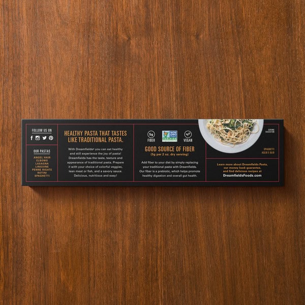 Eat healthy and still experience the joy of pasta with Dreamfields Spaghetti 13.25 oz. Dreamfields pasta provides the delicious taste and texture of traditional pasta with the benefit of prebiotic fiber to help promote healthy digestion and overall gut health. Non-GMO, vegan, and kosher certified, Dreamfields pasta is a good source of fiber, with 5g per 2 oz. dry serving and can be a nutritious and delicious part of a heavlthy diet. Dreamfields Spaghetti is a long, cylindrical pasta strand that is excellent for twirling a variety of sauces. Prepare Dreamfields Spaghetti with a classic Bolognese or creamy lemon ricotta sauce. Available in seven classic pasta shapes, Dreamfields is an easy substitute for traditional pasta in your favorite recipes. With Dreamfields, the dream is real.â„¢ You can have your pasta and eat healthy too.