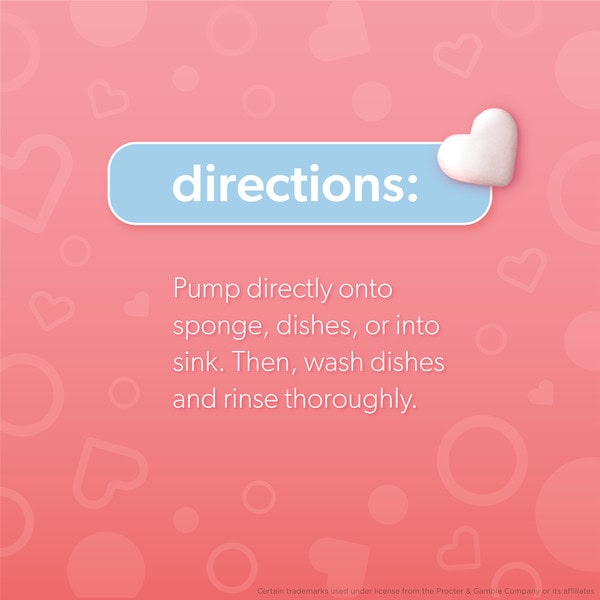Directions: Pump directly onto sponge, dishes or into sink. Wash dishes and rinse thoroughly.