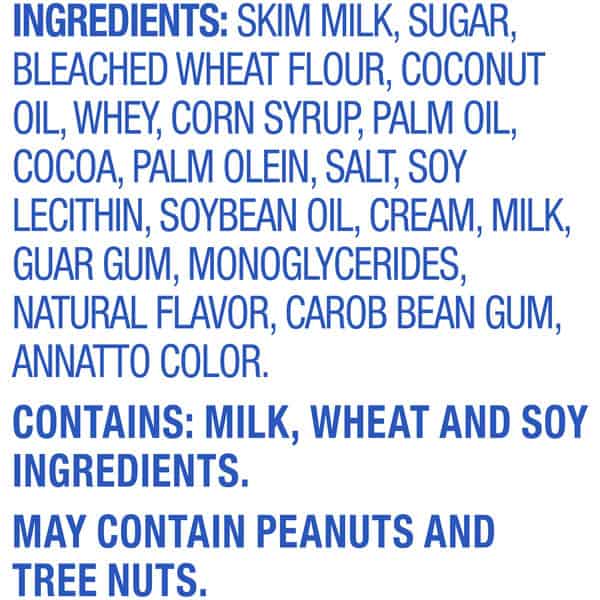 Contains: milk, wheat and soy ingredients. May contain egg, peanuts and tree nuts.