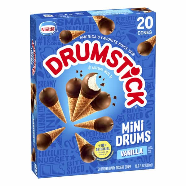 • Drumstick Mini Drum Sundae Cones deliver all the big frozen treat flavor of original Drumstick Cones in a portion- and kid-friendly size