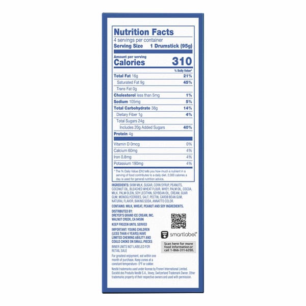 • Crispy sugar cone with creamy vanilla caramel center and rich chocolatey dipped coating topped with roasted peanuts
