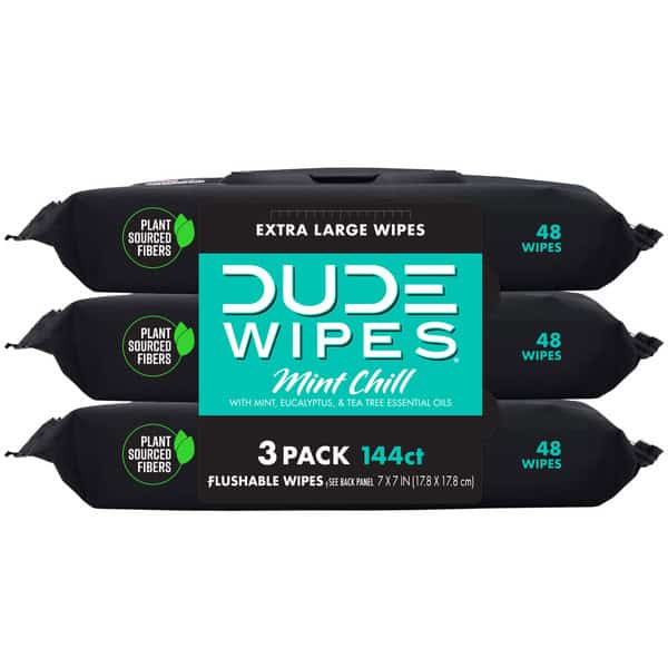 Mint Chill 99% Water with mint, eucalyptus, tea tree essential oils. Plant sourced fibers. Flushable wipes. (For flushing see back panel) (Independent lab testing shows these wipes meet INDA Flushable Product Guidelines. Not all systems can accept flushable wipes. Ignoring Disposal Instructions may lead to clogs, property damage, or regulatory violations). Back in the day, we founded Dude Products out of our apartment in Chicago. We were so tired of dealing with dry toilet paper during the aftermath of a lunchtime burrito. Something needed to be done. So we created Dude Wipes to put you back on your game whenever nature calls. Assembled in USA.