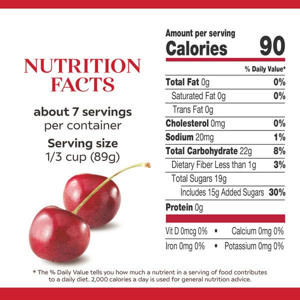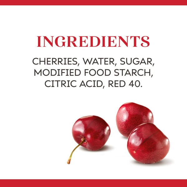 Cherries, Water, Sugar, Modified Food Starch, Citric Acid, Red 40.