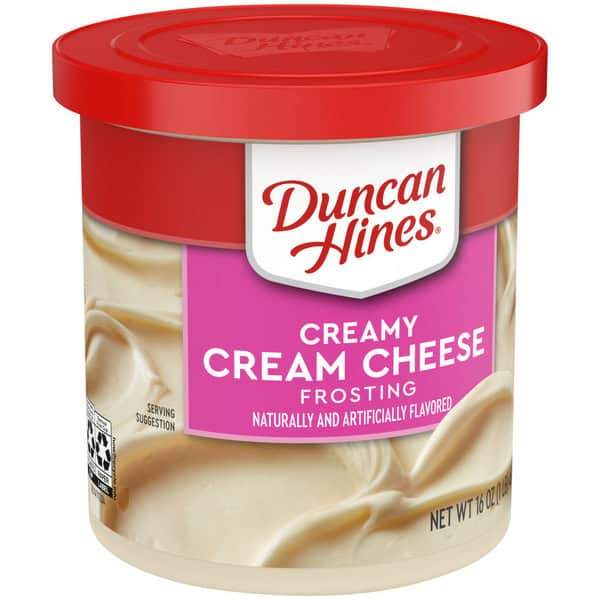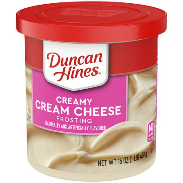 Duncan Hines Creamy Cream Cheese Frosting makes it easy to whip up irresistible treats. Its rich, creamy flavor satisfies your cream cheese cravings. Perfect for any occasion, this frosting pairs well with chocolate, vanilla or fruit flavored desserts. Use as a carrot cake, red velvet cake or chocolate cake frosting, strawberry cupcake frosting or dessert topping. This can of cream cheese frosting is enough to frost two 8 or 9 inch cake layers, a 13 x 9 inch cake or up to 24 cupcakes. Keep with your baking and cake decorating supplies to have on hand for any cookie decorating or cake decorating needs. Store the unopened can at room temperature and stir before use. Cover and refrigerate remaining frosting for up to 30 days. From whipped frosting, to single serve desserts, Duncan Hines has you covered when you’re ready to bake and create. Life is as sweet as you make it!