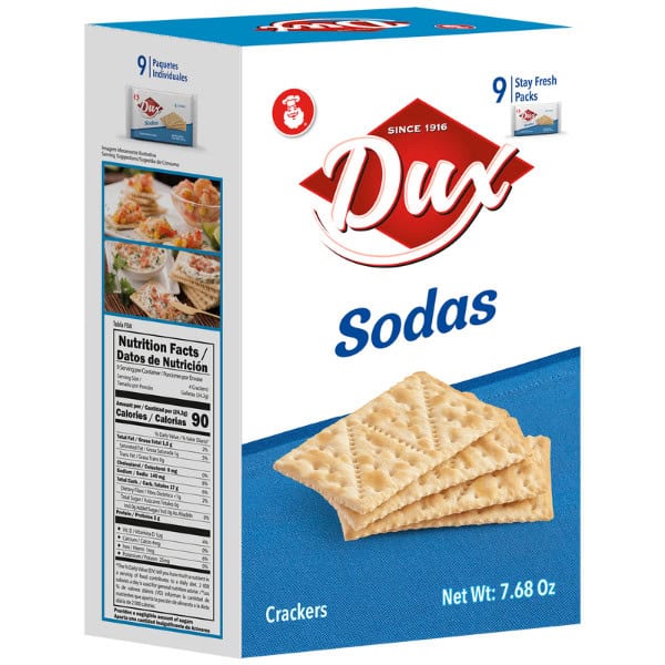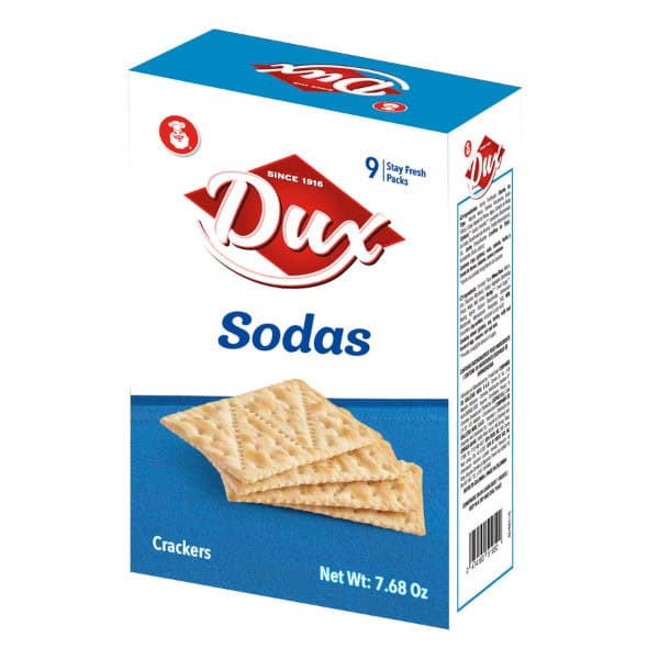 DUX ORIGINAL SODA: With its delicious crispy flavor & the perfect touch of salt, Original Dux Soda is a must-have for the dinner table and pantry