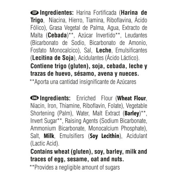 Enriched Flour [wheat Flour, Niacin, Iron, Thiamine, Riboflavin, Folic Acid], Vegetable Shortening (palm)*, Salt, Invert Sugar, Malt Extract, Water, Leavenings [sodium Bicarbonate, Monocalcium Phosphate, Ammonium Bicarbonate], Yeast, Yeast Food, Milk*, Emulsifier Lecithin (soy), Acidulant (lactic Acid), Amylolytic Enzymes.