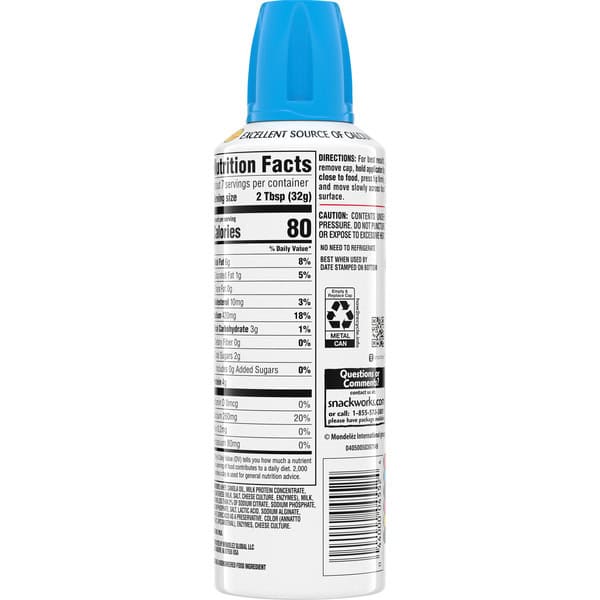 Easy Cheese American Cheese Snack has the delicious taste of American cheese in a fun, spreadable form. This convenient 8 ounce can of spray cheese is pasteurized and requires no refrigeration. Made from milk, whey, and real cheese culture, Easy Cheese spread is an excellent source of calcium. Make cheese and crackers, pretzels and other snacks more fun with this spray cheese.
