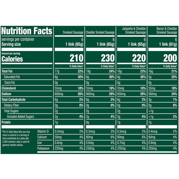 • Jalapeño and cheddar smoked sausage links are quick and easy to prepare for an everyday meal with homemade taste