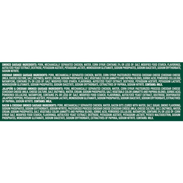 • Enjoy the mild spice of jalapeño and the rich, smooth flavor of real cheddar with each bite of these smoked sausage links