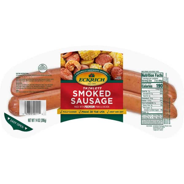 • Includes one 14 oz package of Eckrich Skinless Smoked Sausage