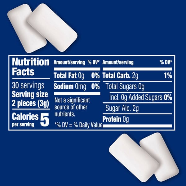 Sorbitol, Maltitol, Gum Base, Natural And Artificial Flavors, Acacia; Less Than 2% Of: Glycerol, Aspartame, Soy Lecithin, Acesulfame K, Carnauba Wax, Bht (to Maintain Freshness).