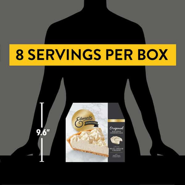 EDWARDS DESSERTS – Exceptional indulgences made effortless! No matter how you slice our decadent, velvety layers and fresh-from-the-oven cookie crumb crust, our frozen pies are meticulously whipped, sprinkled, and drizzled to extravagant perfection. The Edwards Original Whipped Cheesecake is made with real cream cheese and sour cream then whipped into a smooth, creamy filling and finished with beautiful rosettes. Simply thaw and serve to see how this whipped cheesecake will be the talk of the dessert table for every occasion and holiday.