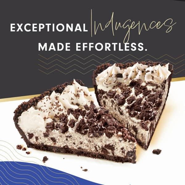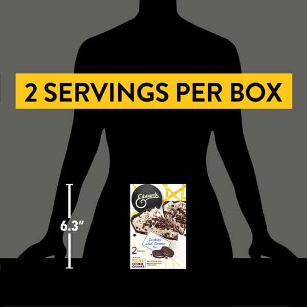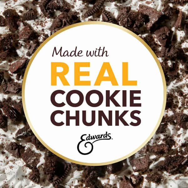 EDWARDS DESSERTS – Exceptional indulgences made effortless! Our smooth, decadent frozen pies are meticulously whipped, sprinkled, and drizzled to extravagant perfection. All you have to do is relax and treat yourself to the rich flavor, velvety crème layers, and fresh-from-the-oven cookie crumb crust. Our two slices of Edwards Cookies & Crème Pie are layered with fluffy vanilla crème and chocolate cookie crumbles and topped with whipped crème rosettes and a cookie crumb garnish. Simply thaw and enjoy a slice or two!
