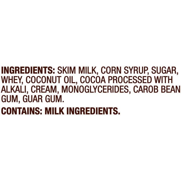 Skim Milk, Corn Syrup, Sugar, Whey, Coconut Oil, Cocoa Processed With Alkali, Cream, Monoglycerides, Carob Bean Gum, Guar Gum