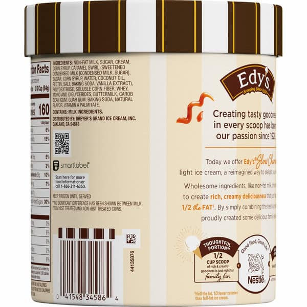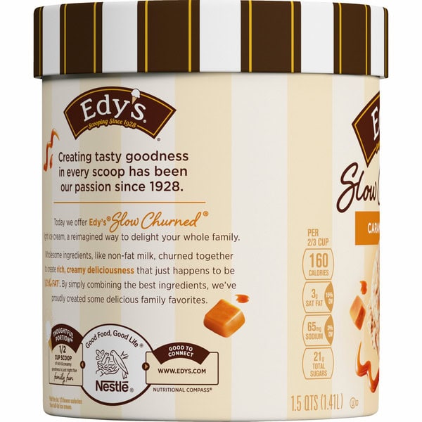 • Edy’s/Dreyer’s Slow Churned Light Ice Cream delivers all of the creaminess and goodness of regular ice cream with a fraction of the fat and calories