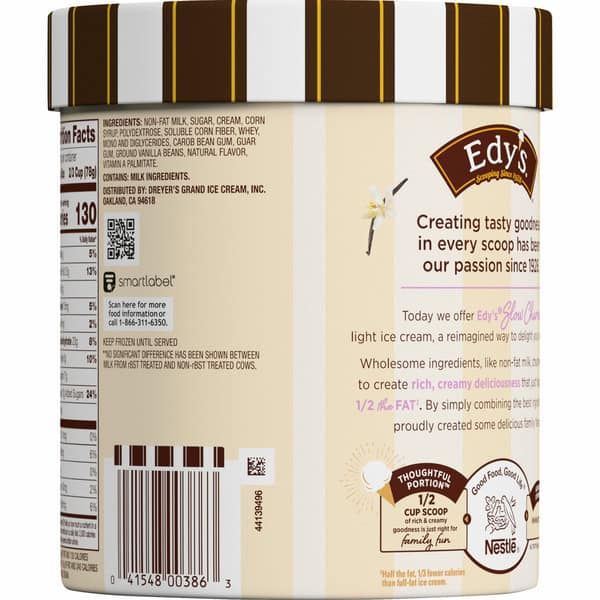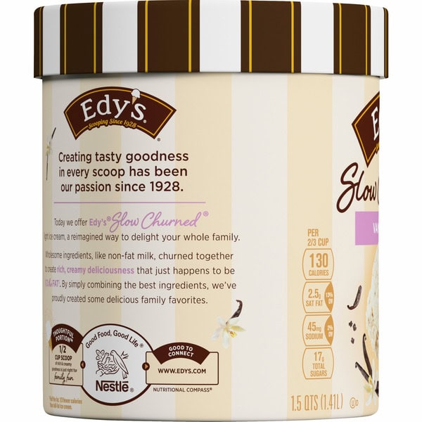 • Edy’s/Dreyer’s Slow Churned Light Ice Cream delivers all of the creaminess and goodness of regular ice cream with a fraction of the fat and calories