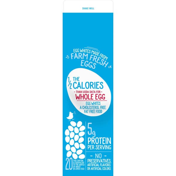 Shake well. Use within 7 days of opening. For Use in Recipes: 3 tbsp = whites of 1 large egg. 1/3 cup = whites of 2 large eggs. 3/4 cup = whites of 4 large eggs.