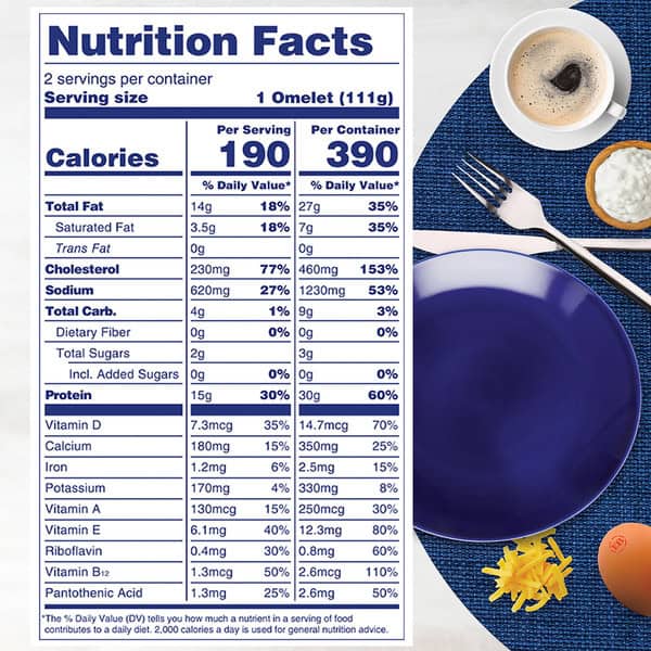 • Superior-tasting, 2-count Ham & Cheese Omelet with 15 grams of protein