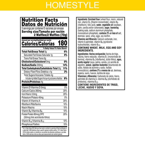 • Delicious frozen waffles with an inviting Eggo Homestyle flavor; The whole family will love the enticing aroma and sweet taste