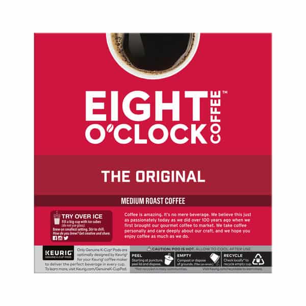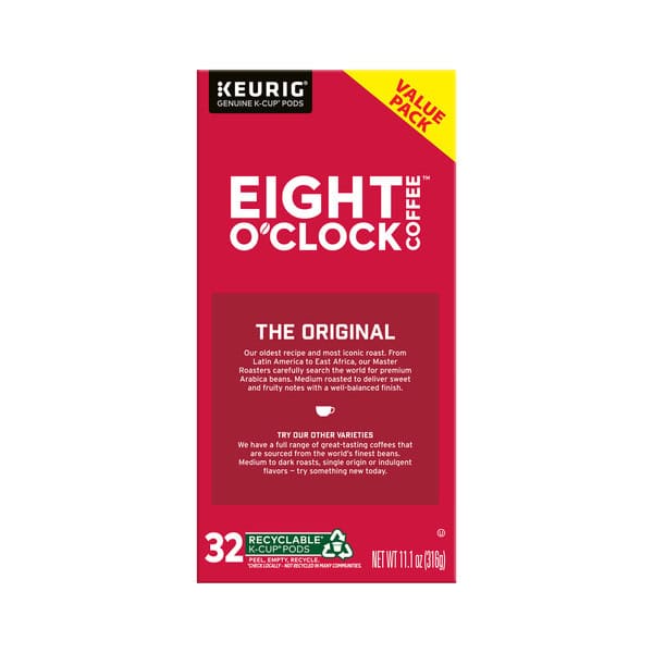 • Contains 32 count box of Eight O’ Clock The Original Keurig single serve pods