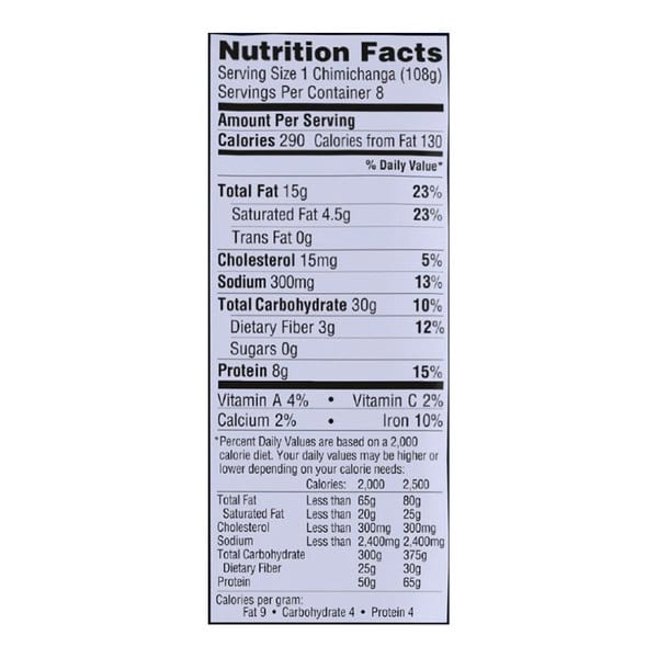 • FROZEN FOOD FIESTA. 8 frozen chimichangas filled with beef and beans
