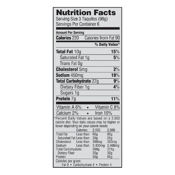 Cooking Instructions – Bake for crispier texture. Oven: Preheat oven to 400 degrees F. Spread 6 taquitos evenly 1 inch apart on baking sheet lined with parchment paper. Frozen: 10 minutes. Let taquitos stand for 1 minute before eating. Air Fryer: 380 degrees F. Place 6 taquitos in air fryer basket. Frozen: 6 minutes. Let taquitos stand for 1 minute before eating. Microwave (1,100 watt microwave): Place 3 taquitos on a ceramic plate in the center of microwave. Frozen: 1 minute 15 seconds let taquitos stand for 1 minute before eating. For food safety and quality, internal product temperature must reach 165 degrees F. since ovens and microwaves may require adjusting. Caution: product may be hot.