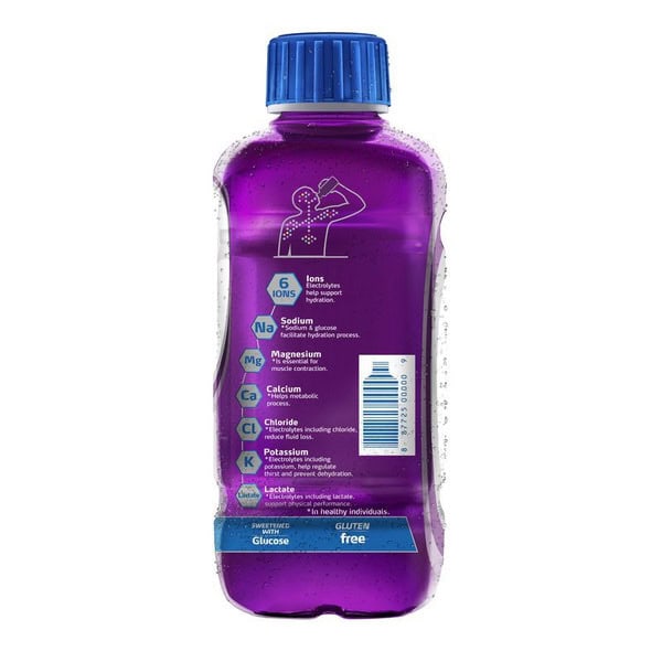 Water, Dextrose Monohydrate, Contains 2% Or Less Of: Sodium Lactate, Potassium Chloride, Citric Acid, Molasses, Magnesium Chloride, Natural Grape Flavor, Calcium Chloride, Salt, Steviol Glycosides, Fd&c Red No. 40, Fd&c Blue No. 1