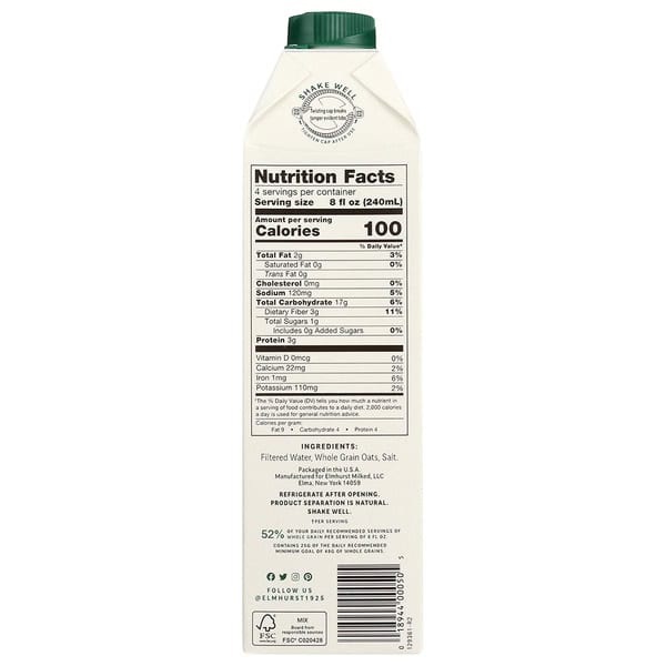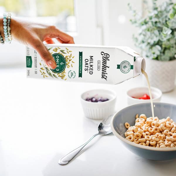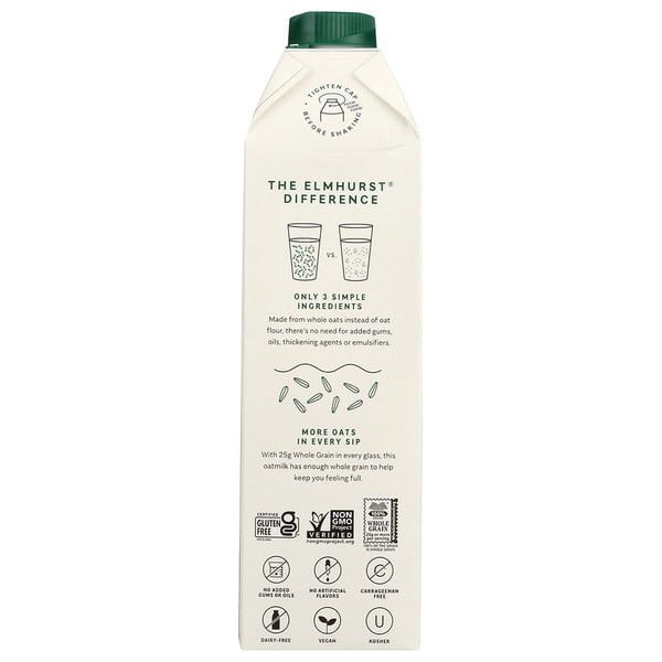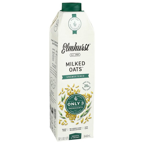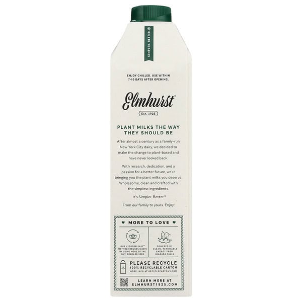 The best oat milk starts with the simplest ingredients– just oats, water and a pinch of salt. Naturally smooth and creamy without added oils, gums or fillers, Elmhurst’s Unsweetened Oat Milk is great for smoothies, coffee, cereal and more! And with 25g whole grain in every glass, this one helps keep you feeling full.