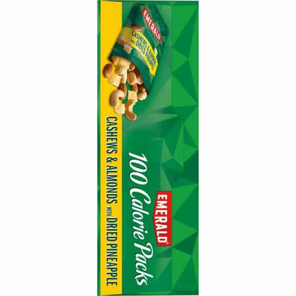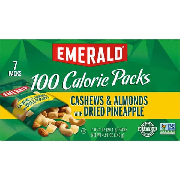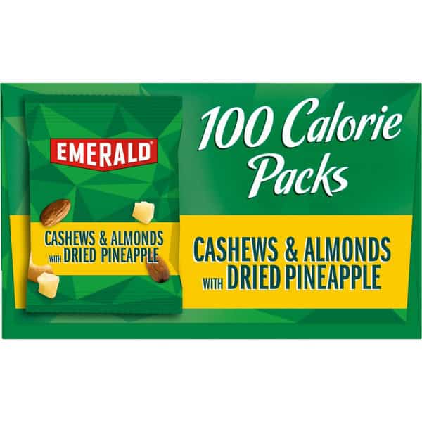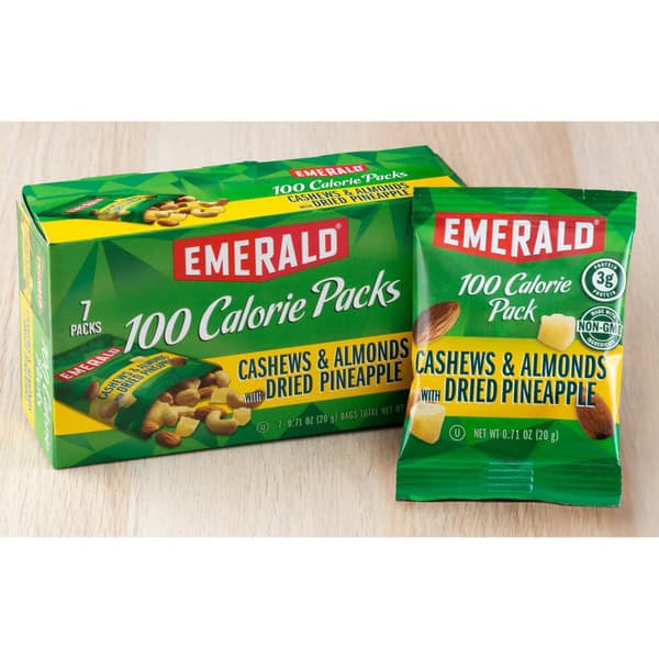 Emerald cashews and almonds are naturally flavorful but when combined with sweet and chewy pineapple chunks, these packs are the perfect convenient, and satisfying snack. We know our Emerald nuts are hard to put down, which is makes these little 100 calorie packs perfect for portion control. Emerald harvests only the tastiest, crunchiest, high quality nuts. Our secret is in our unique seasoning and distinct crunch that each nut provides. Whatever the occasion, Emerald has the specific nut you are looking for.,