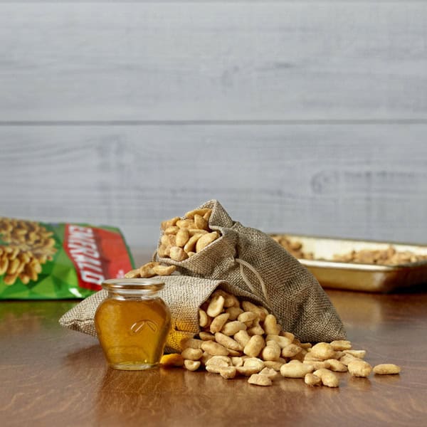 – Extra large, extra crunchy Virginia peanuts with a sweet honey glaze
