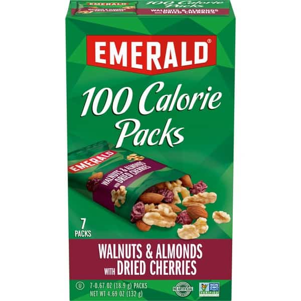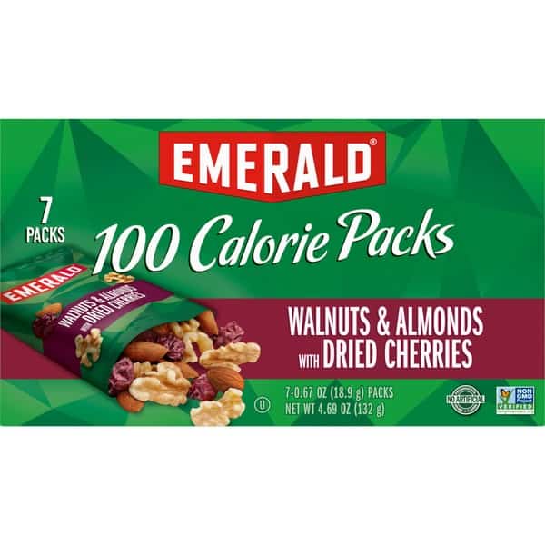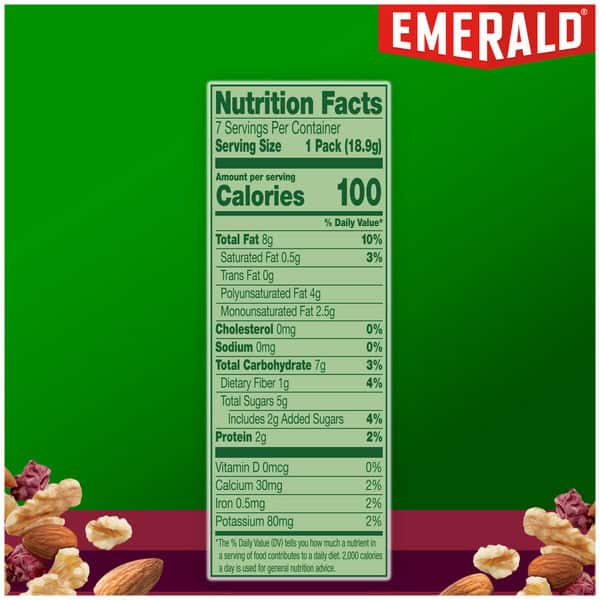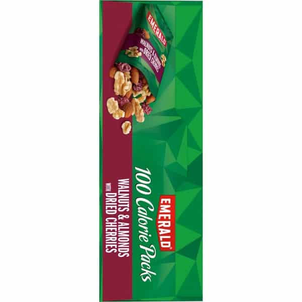 At Emerald, we’re nuts about providing you with high-quality and delicious nuts. Unsalted almonds and walnuts are full of natural flavor and crunch, and dried cherries are sweet and chewy, making these 100-calorie packs the perfect convenient, and satisfying snack. And because you don’t always have time to stop for a satisfying snack, our 100-calorie packs are great for your on-the-go lifestyle. Emerald harvests only the tastiest, crunchiest, high-quality nuts. Our secret is in our distinct crunch that each nut provides. With no artificial preservatives, colors, or flavors, no gluten, and no GMOs, it’s a snack you’ll feel good about! And each pack has 3g of protein to help fuel your active day. So when you want a better-for-you snack to satisfy your craving, you can count on Emerald Nuts.,