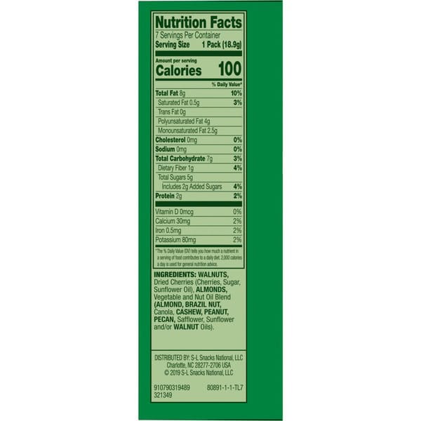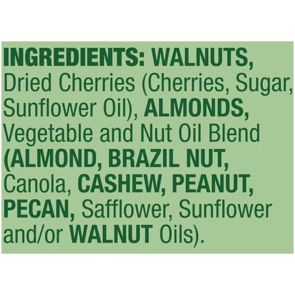 Walnuts, Dried Cherries (cherries, Sugar, Sunflower Oil), Almonds, Vegetable And Nut Oil Blend (almond, Brazil Nut, Canola, Cashew, Peanut, Pecan, Safflower, Sunflower And/or Walnut Oils)