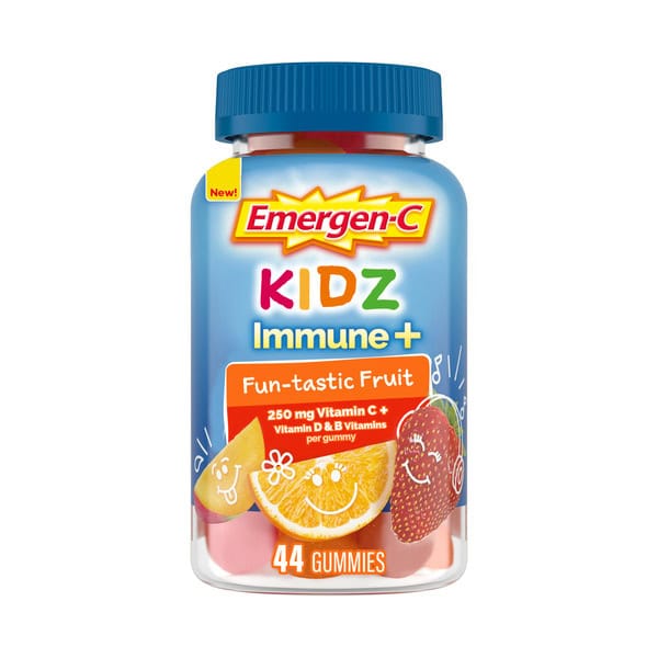 • 44 count bottle of Fun-tastic Fruit flavored Emergen-C Kidz Immune+ Immune Support (1) Dietary Supplements, Flavored Gummies with Vitamin C, B Vitamins and Vitamin D