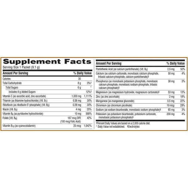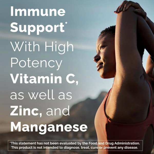 • Dietary supplement that supports immune health (1) with antioxidants such as vitamin C, zinc and manganese, as well as having B vitamins and electrolytes